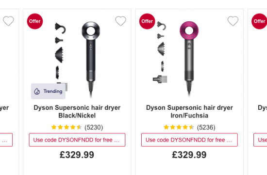 Today’s Best Deals Save 20% on selected Dyson Supersonic, plus £50 Worth of points with code SUPERSONIC20 Save £100 on selected Dyson Corrale – £299 (was £399) Free next day delivery on selected Dyson with code DYSONFNDD Best…